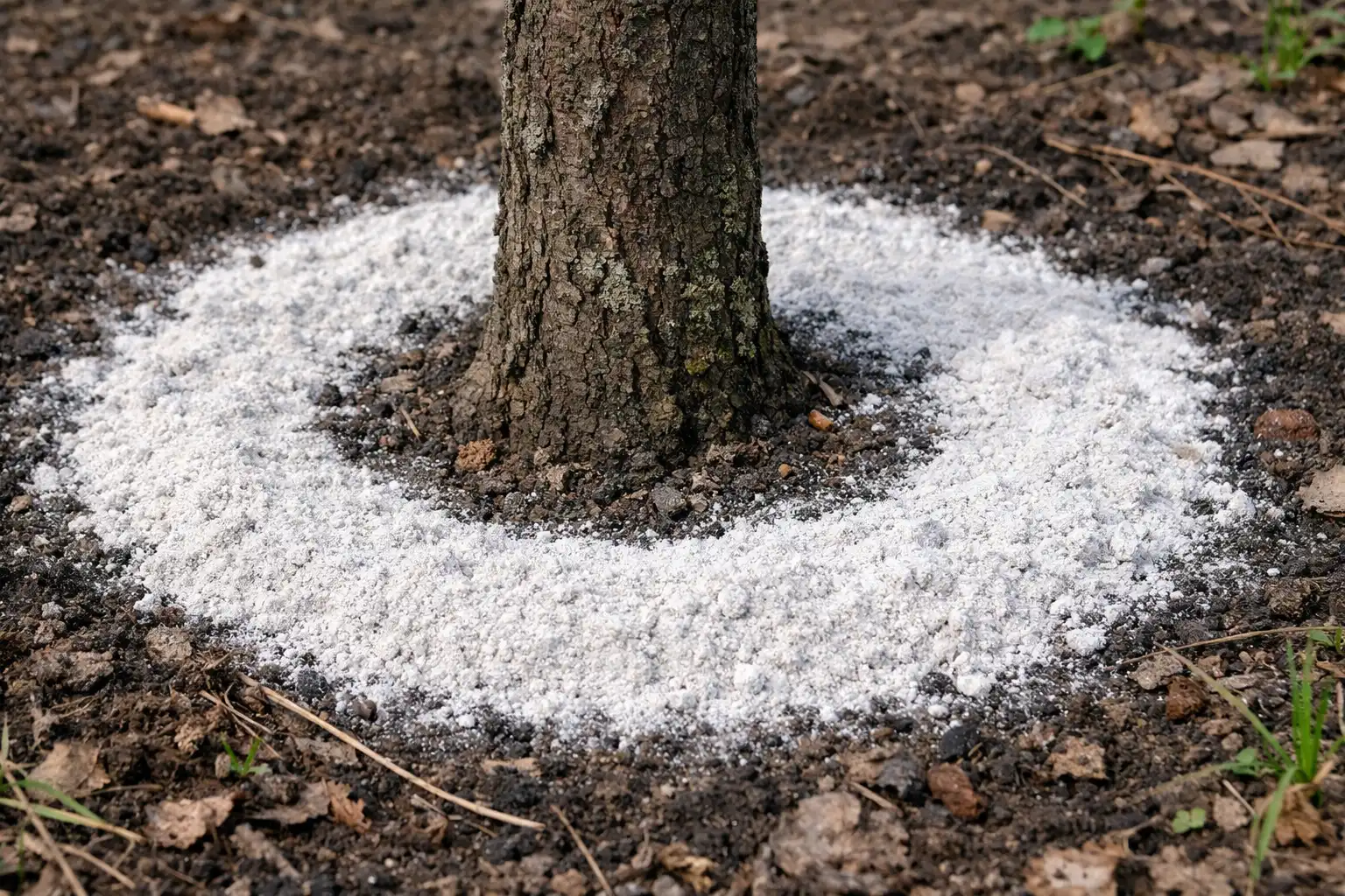 Lisäys kaivoihin. Tehokkaampi menetelmä. Tee puun ympärille, 0,5 – 1 metrin etäisyydelle rungosta, useita pieniä reikiä (15-20 cm syvä), kaada siihen jauhoja ja peitä se maalla.