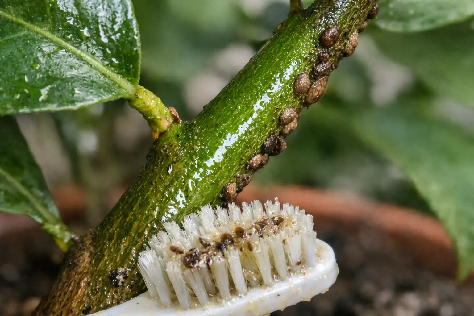 Monet ihmiset neuvovat pyyhkimään sitruunan yksinkertaisesti saippualla, mutta suomuhyönteistä suojaa kestävä vahakuori. Tavallinen ratkaisu yksinkertaisesti valuu siitä pois. Tuholaisen voittamiseksi sinun on tuhottava sen puolustus tai estettävä sen hengitys.