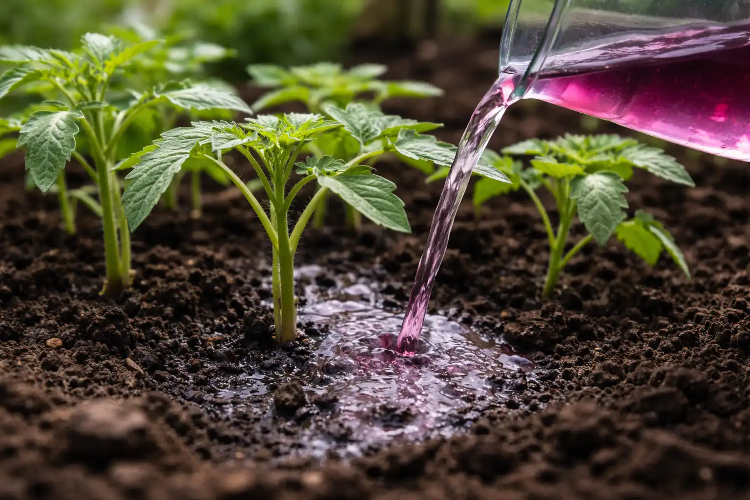”Menestyksen pääsalaisuus on veden lämpötila. Jotta kaliumpermanganaatti toimisi piristeenä, liuotetaan kiteet veteen, jonka lämpötila on noin 25–30 astetta. Kylmä liuos imeytyy kasveihin paljon huonommin ja voi aiheuttaa stressiä epäkypsissä taimissa.”
