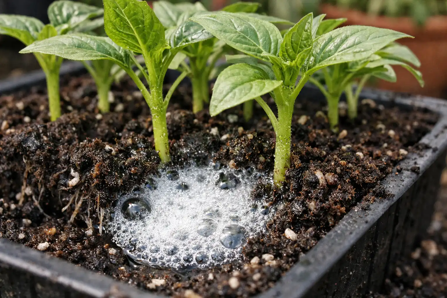 ”Suosittelen lisäämään peroksidia jopa kaupasta ostettuun maaperään. Se on usein liian tiheää ja huonoa ilmaa, mikä on haitallista nuorten tomaattien ja paprikan herkälle juuristolle”, asiantuntija huomauttaa.