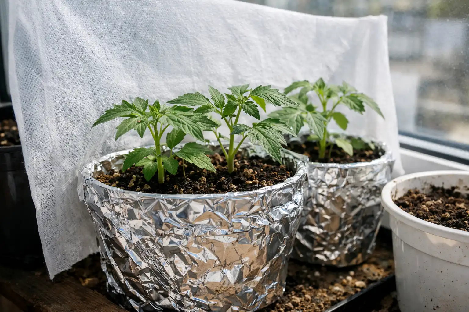 Kääri ruukut tavalliseen folioon tai valkoiseen paperiin heijastamaan säteitä.