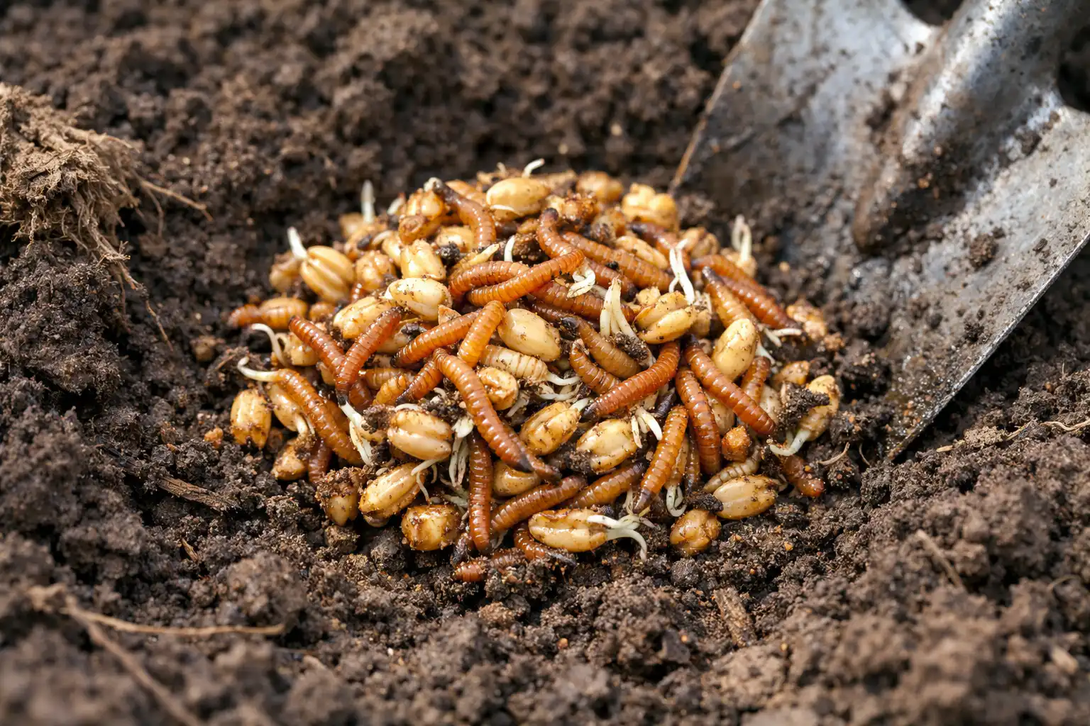 Kaivaa jyvät kerättyjen toukkien kanssa 4–5 päivän kuluttua ja polta se.