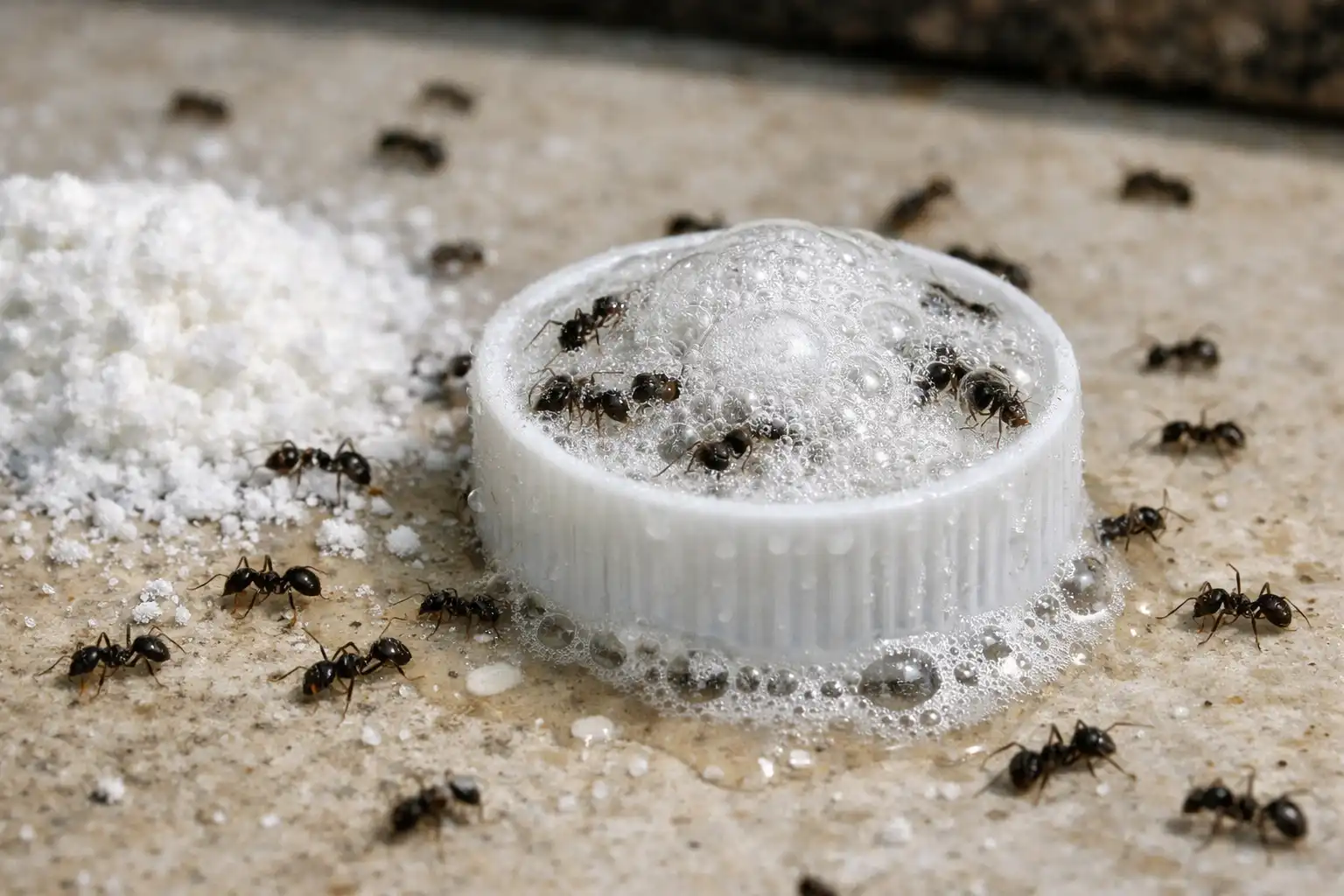 Asiantuntijan salaisuus: Älä koskaan käytä tavallista sokeria tomusokerin sijaan. Muurahaiset ovat liian älykkäitä ja yksinkertaisesti lajittelevat soodajyviä jättäen ne koskemattomiksi. Vain hieno hionta takaa tuloksen.
