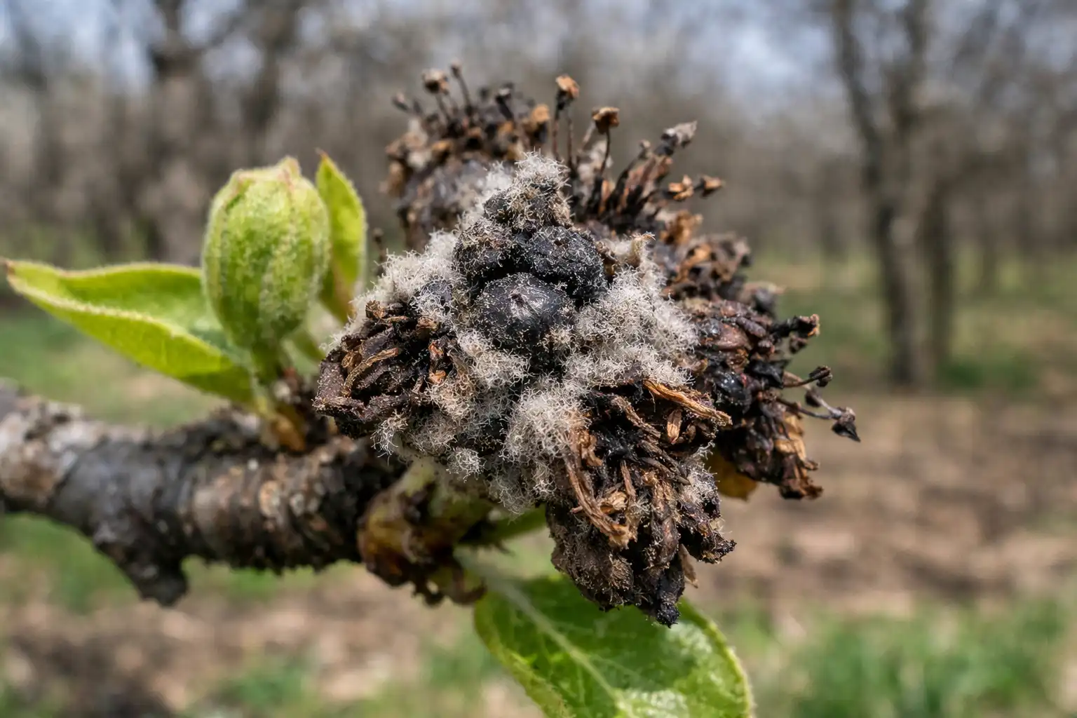 Todennäköisimmin puussa on piilevä monilioosin tai rupimuoto, joka steriloi siitepölyn tai tuhoaa munasarjan.