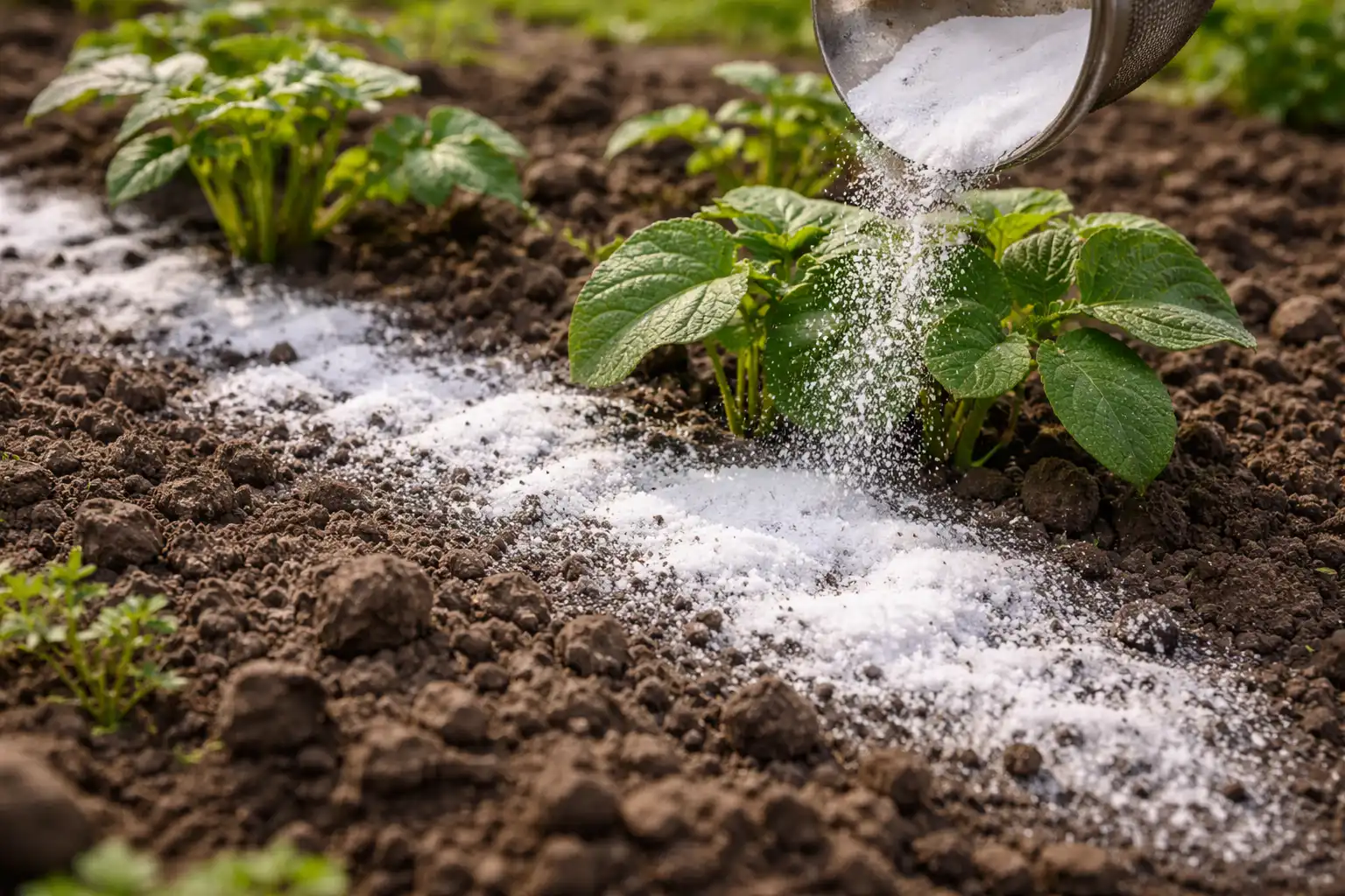 Salainen vivahde: älä kaada soodaa ”silmällä” suoraan mukulaan. Välttääksesi nuorten versojen palamisen, sekoita sooda aina kuivaan hiekkaan tai puutuhkaan suhteessa yksi yhteen. Tämä varmistaa pitkäaikaisen vaikutuksen ja tasaisen jakautumisen.