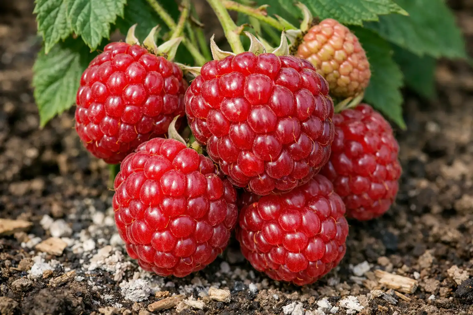Salainen vivahde: hän rakastaa vadelmia kaliumiajoka on vastuussa sokereiden siirtymisestä hedelmiin. Jos lisäät sen ensimmäisen typpilannoituksen kanssa, pensas muodostaa paljon enemmän kukkanuppeja.