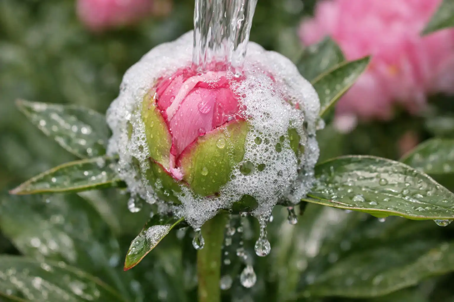 Salainen vivahde: älä koskaan käytä jäävettä kaivosta ruiskutukseen. Koostumuksen valmistamiseksi ota vain laskeutunutta vettä huoneenlämpötilassa, jotta pioni ei aiheuta lämpötilashokkia.