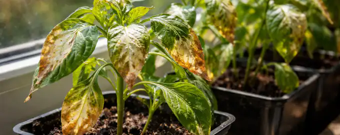 Jos herkät pippurin idut alkavat yhtäkkiä pudottaa lehtiään tai peittyvät kuiviin, vaaleisiin täpliin aurinkoisen päivän jälkeen, älä epäröi.